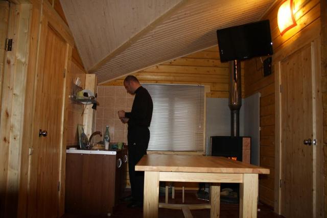 В нашем клубе можно арендовать тёплые домики со всеми удобствами! Просторная гостиная с дровяным камином, уютные спальни, спутниковое телевидение, санузел с душевой кабиной, кухня с условиями для приготовления пищи, всё это сделано для того, чтобы Вы чувствовали себя комфортно, отдыхая после рыбацких баталий… Домики рассчитаны на комфортное размещение 6-и человек.